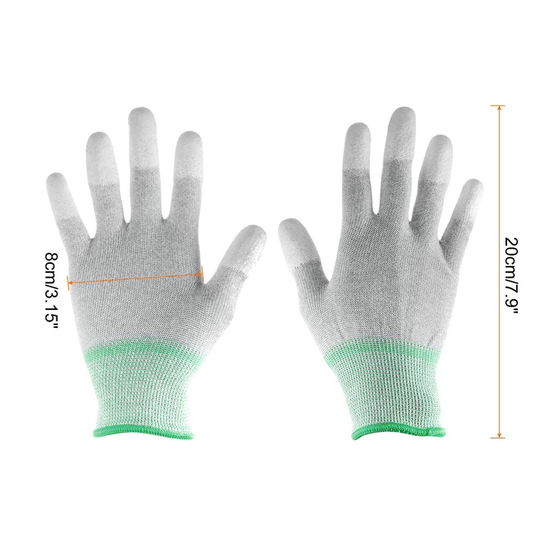 - Package Contents - You will receive 6 Pairs of conductive carbon fabric palm coating gloves(electrostatic discharge gloves) for cleaning rooms, laboratories, PCB factories, or electronic manufacturing.
