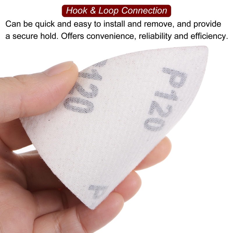 Multitool sandpapers are suitable for wood, metal, plastics, and fiberglass, great for general grinding, polishing and sanding. Widely used in woodworking, auto repair, metalworking and general finishing surfaces. Triangular sandpapers provide better access to tight spaces and ensures efficient sanding of corners and edges.