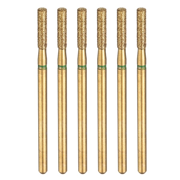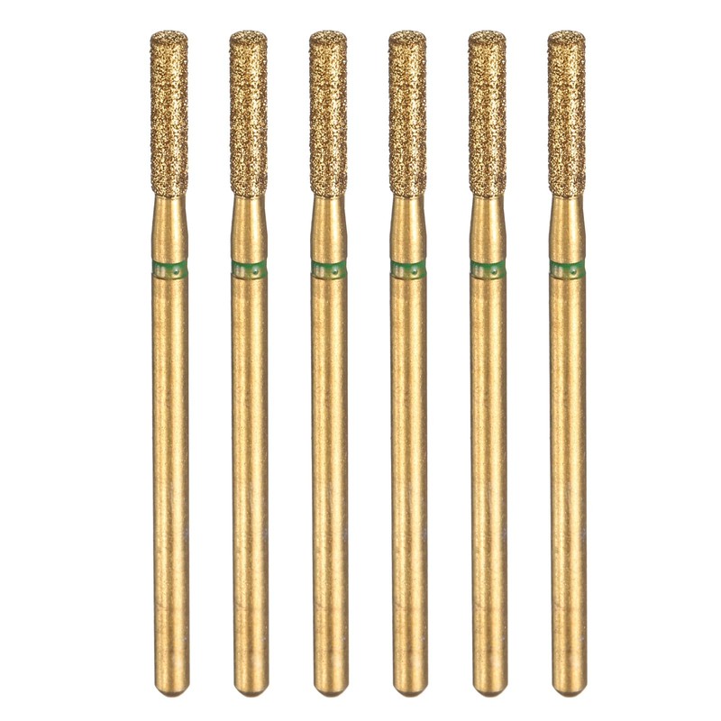 HARFINGTON 6pcs 100-120 Grits Diamond Grinding Bit 2.3mm Cylinder Head 2.35mm Shank 10mm Length Titanium Plated Stone Sanding Drill Bits Rotary Tool for Nails Grinding Polishing