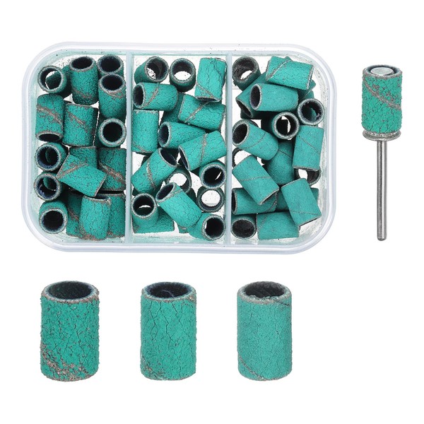 HARFINGTON 76pcs Small Sanding Bands 80/120/180 Grit for Nail Drill Bits Mini Sanding Band with 2.35mm Mandrel for Nails Gel Manicures Green