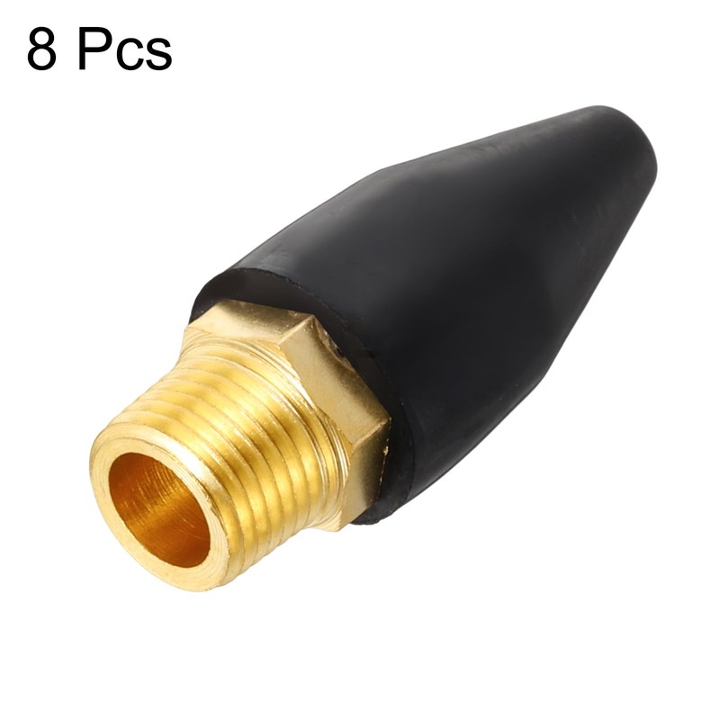 The 8pcs Air Nozzle Tip set is designed for air tools, constructed with rubber and brass materials. It features a 1/8" NPT male thread for compatibility with various air tools.