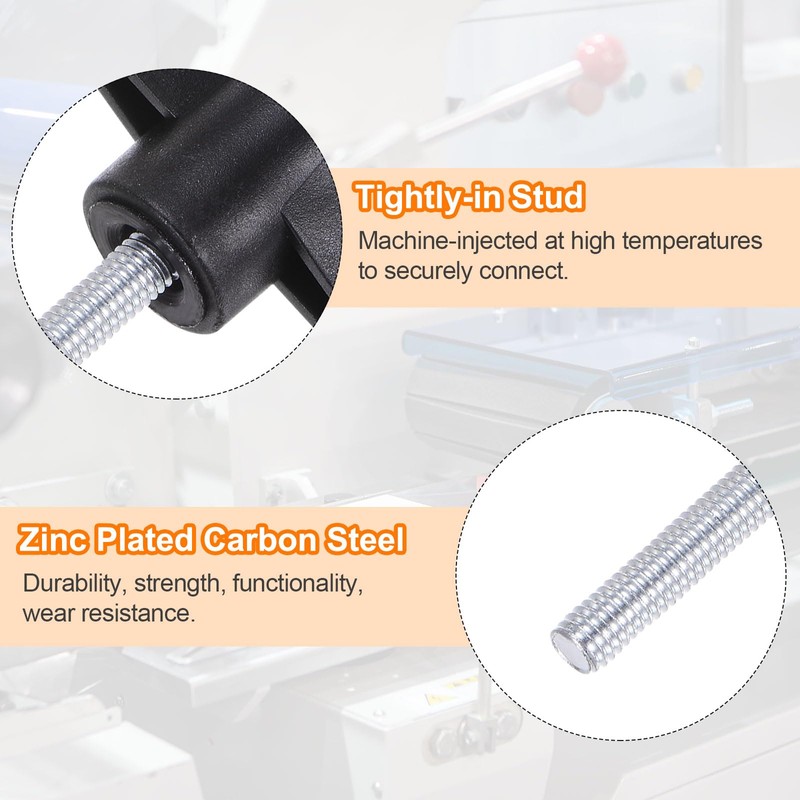 - Material - Zinc plated carbon steel threaded studs on T wing knobs ensure durability, strength, functionality and wear resistance. Thermoplastic tee head knobs provide durability, a smooth surface and comfortable grip. The washers and nuts are made of 304 stainless steel, with excellent corrosion and rust resistance, oxidation resistance and high strength, ensuring durability and stability.