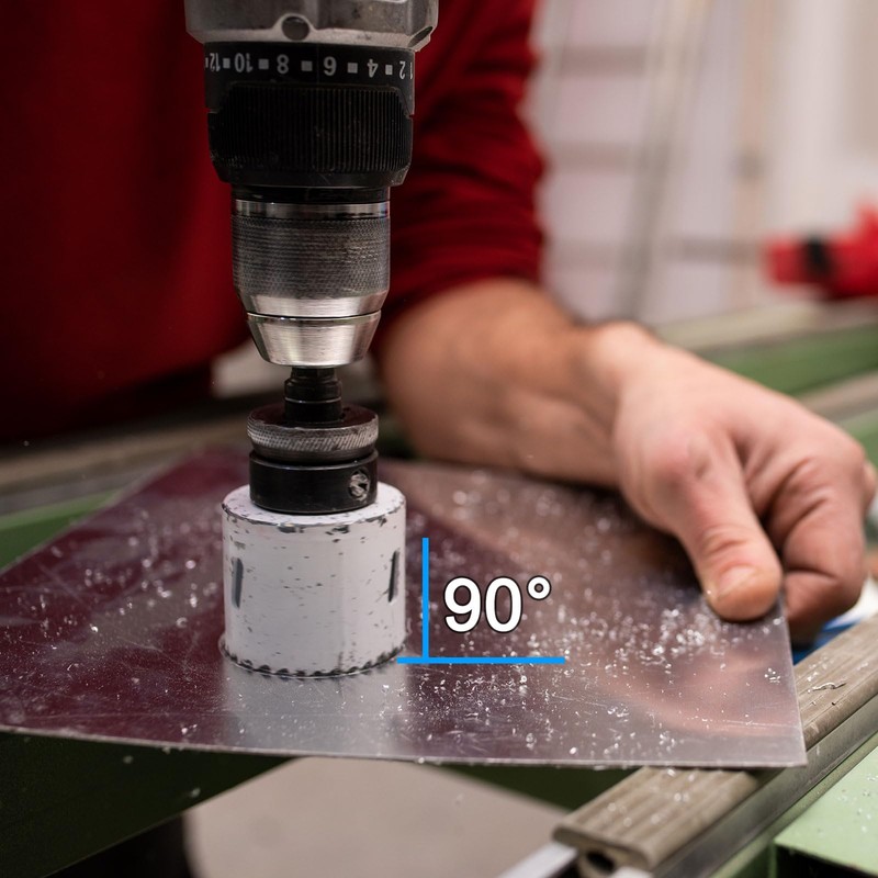 4. Metal hole saw kits can be installed on hand drills, impact drills, bench drills, and CNC drill presses. Before making any adjustments or replacing the hole saw, make sure the drill or drill press is turned off and unplugged.