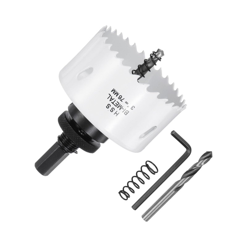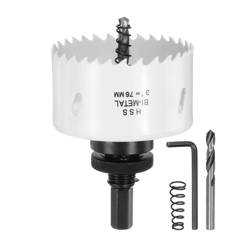 - Size - Bi-Metal Hole Saw Cutting Diameter: 76mm / 2-15/16", Cutting Depth: 38mm / 1.5"; Arbor Hex Shank Size: 7/16"; Center Drill Size: 6.3mm / 1/4", Center Drill Length: 72.4mm / 2.85".