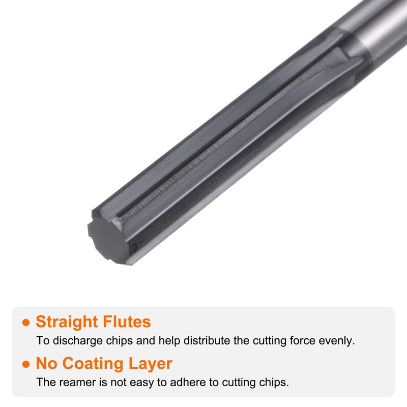 - Material- This straight flute reamer is made of solid carbide and has the characteristics of high hardness, high strength, strong wear resistance, good corrosion resistance, and excellent thermal stability. These properties enable the reamer to always maintain stable cutting capabilities and a long working life—no need to worry about breakage or deformation.