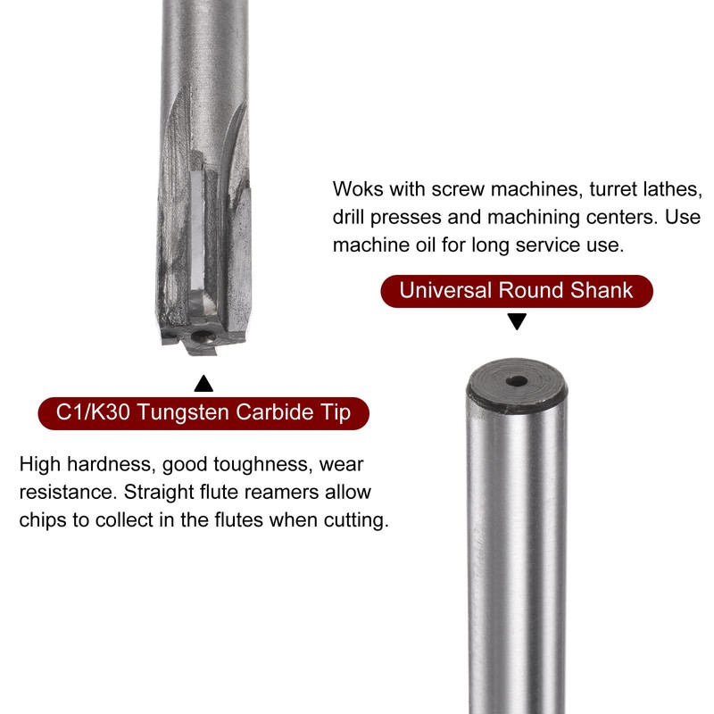 - Notes - Use on all types of equipment including screw machines, turret lathes, drill presses and machining centers. Always keep reamers clean, and used with machine oil for long service use. Should held in a good-quality toolholder.