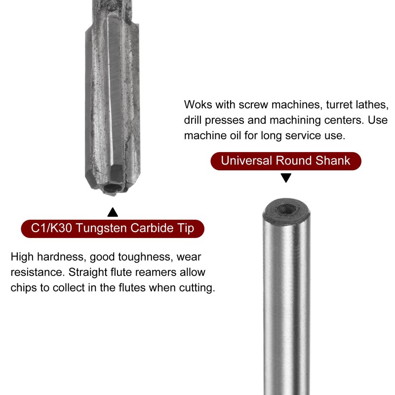 • Notes - Use on all types of equipment including screw machines, turret lathes, drill presses and machining centers. Always keep reamers clean, and used with machine oil for long service use. Should held in a good-quality toolholder.
