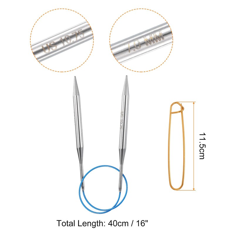 - Size - Knitting Needles have a total length of 40cm/16 inches and a needle length of 10.5cm/4.13 inches; The needle is US 11/7.0mm in size, and The Knitting Stitch Holders are 11.5cm long and 12cm wide.