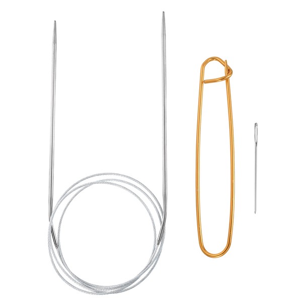 HARFINGTON Circular Knitting Needles 40" Stainless Steel US 3/3.0mm Knitting Needles 5.51" with Knitting Stitch Holder for Fast Knitting Tip to Tip Sweater Scarves Necklaces