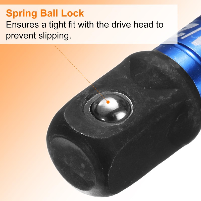 Socket Adapter: Provides a secure, locking extension to your existing tools. Provides extra length to get into hard-to-reach spaces. Anti-drop spring ball lock ensures a tight fit with the drive head to prevent slipping during use.