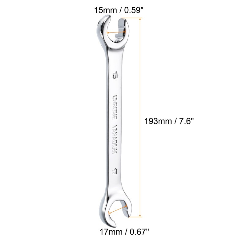 - Size - 15mm x 17mm / 0.59" x 0.67" double open-end nut wrench, The total length is 193mm / 7.6", include 1pcs Wrench