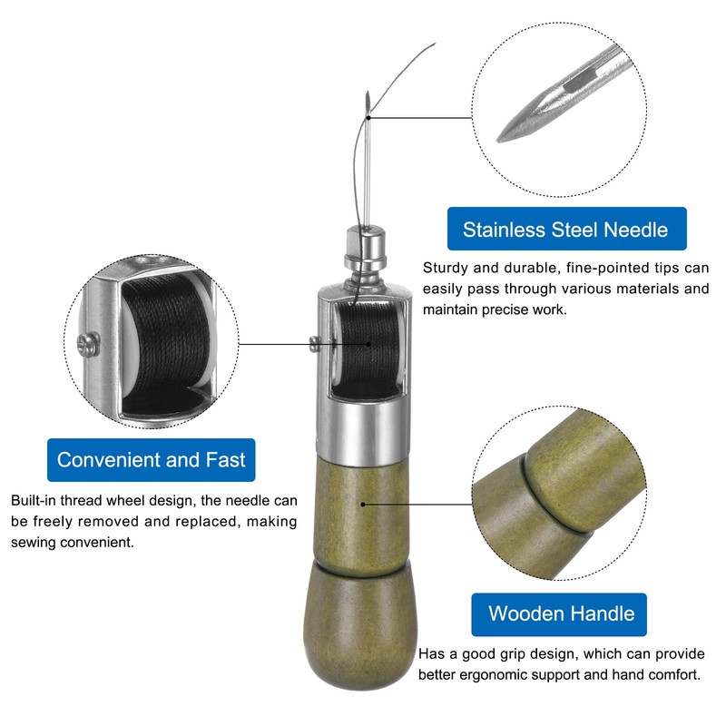 - Material - The sewing awl is made of selected wood and stainless steel, the wooden handle has a good grip design, which can provide better ergonomic support and hand comfort; the sturdy and durable stainless steel needle has an extremely fine pointed tip, It can easily pass through various fabrics and materials and maintain precise work for a long time.