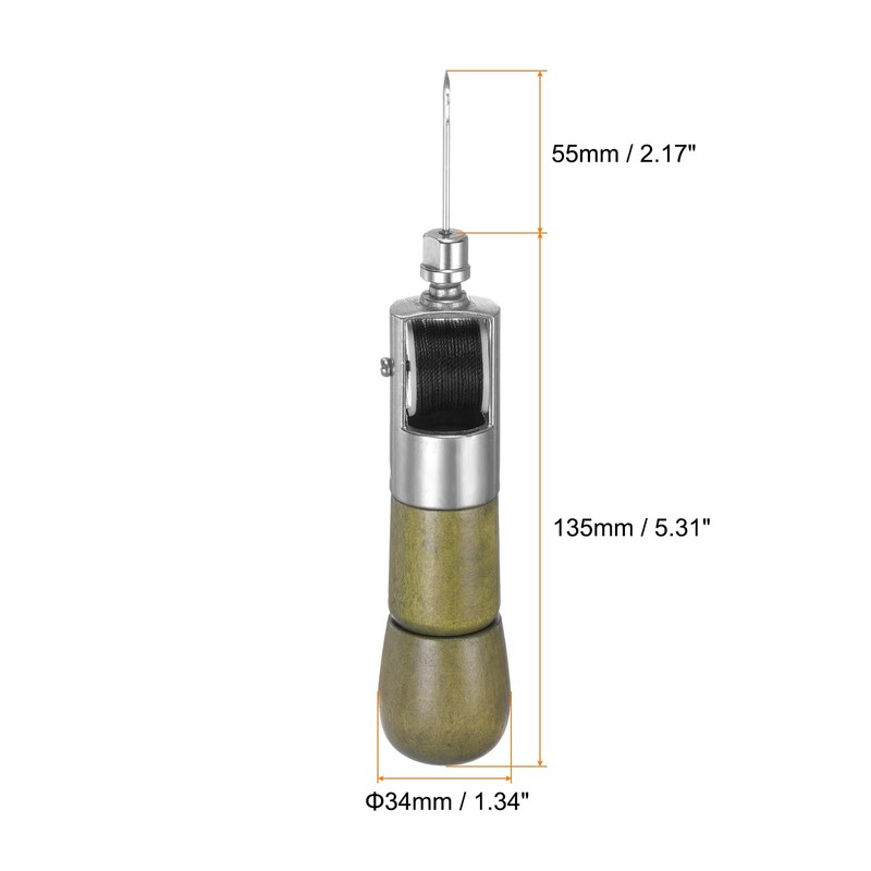 - Size - Awl Size: 135 x 34mm / 5.31" x 1.34"(L x W); Needle Size: 55x 2mm / 2.17" x 0.08"(L x W); Surface Treatment: Polished; Style: Detachable Sewing Awl; Color: Green; Package Content: 1set Sewing Awl Tool(1 handle + 1 roller black thread + 1 nut lock + 2 needles + 1 instruction manual).