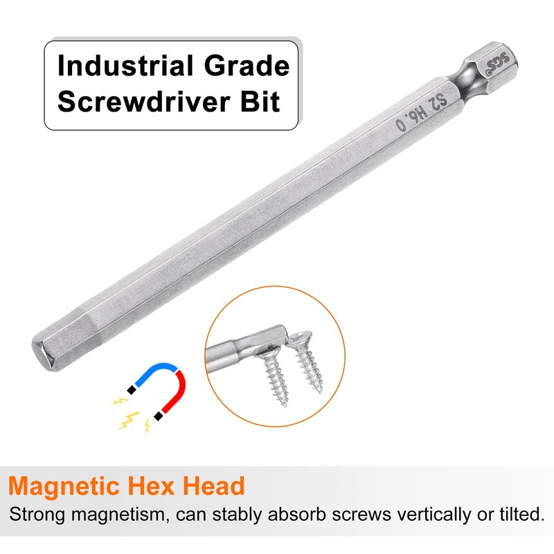 • Feature - Industrial screwdriver bit adopts a strong magnetism design and can absorb screws vertically or tilted. The head is a hexagonal flat head shape, which can make close contact with the screw, making disassembly and installation more stable and less likely to slip.