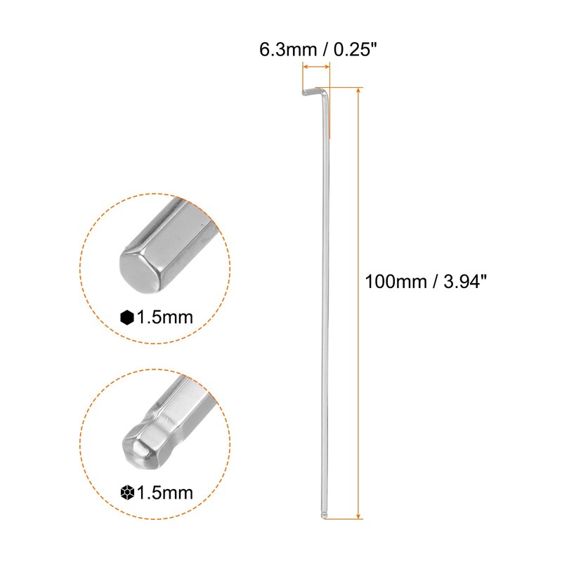 - Size - 1.5mm, Long Arm Length: 100mm / 3.94-inch, Short Arm Length: 6.3mm / 0.25-inch.