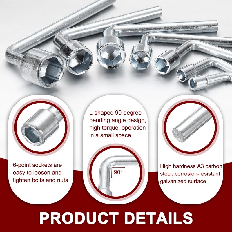 - Material - The L-shaped socket spanner is made of a3 carbon steel, featuring high hardness and strong wear resistance, not easily deformed, and has a long service life. It is lighter and more portable compared to other metal materials. With zinc plating on the surface, it possesses corrosion resistance and is not prone to rust even when used in humid environments.