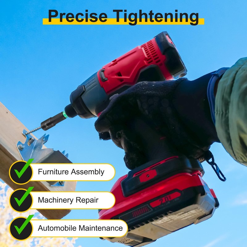 The power nut drivers feature a magnetic tip, ensuring screws and bolts are securely held in place for effortless and precise application. The hexagonal design helps achieve a solid grip and effective torque transfer from the tool to the fastener, reducing the effort needed. Additionally, the extended length design of this nut driver drill bit tool provides enhanced reach and access in tight spaces, ensuring it can effectively handle a wide range of applications with precision and ease.