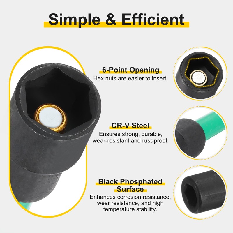 - Material - The nut driver drill bit tool is crafted to engage effectively with hexagonal socket screws and bolts. The tool is made of chrome vanadium alloy steel, ensuring robustness, longevity, abrasion resistance, and rust resistance, and the phosphate blackening surface enhances corrosion resistance, wear resistance, and high-temperature stability