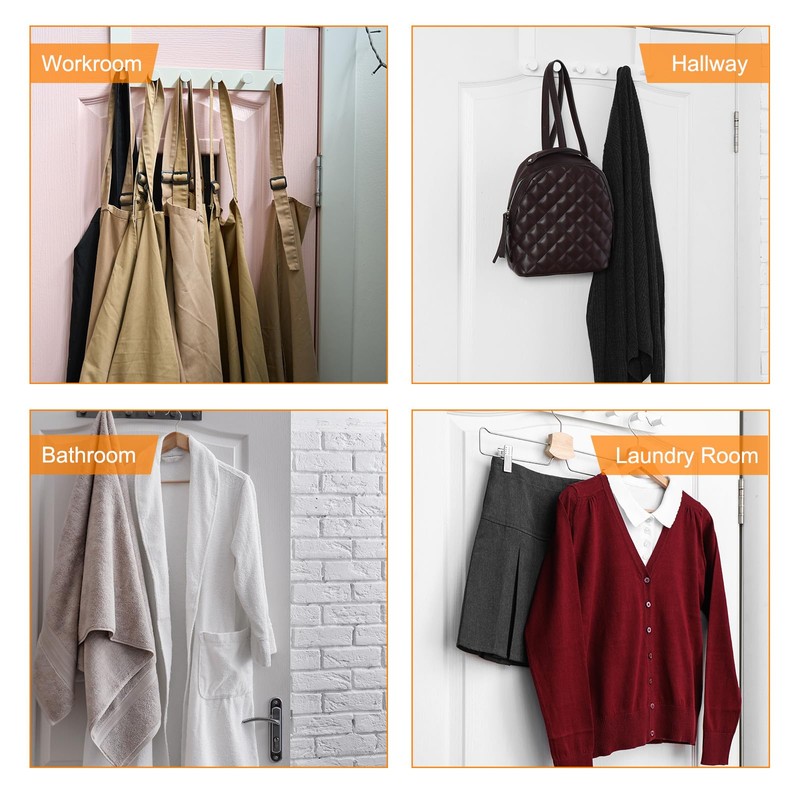 - Usage - These door hooks are easy to install and use, no drilling and assembly are required, just hang the hanger firmly on the door and it can be used immediately. 6 grooves can hang coats, towels, hats, backpacks, etc., helping you to easily organize and utilize the space behind the door and make your room tidy.