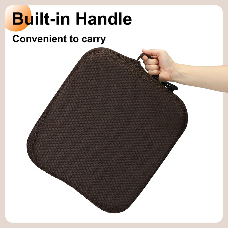 Place the cushion on the seat with the thicker end at the back for maximum support. Adjust the position to your preference. Remove the cover through the zipper for easy cleaning.