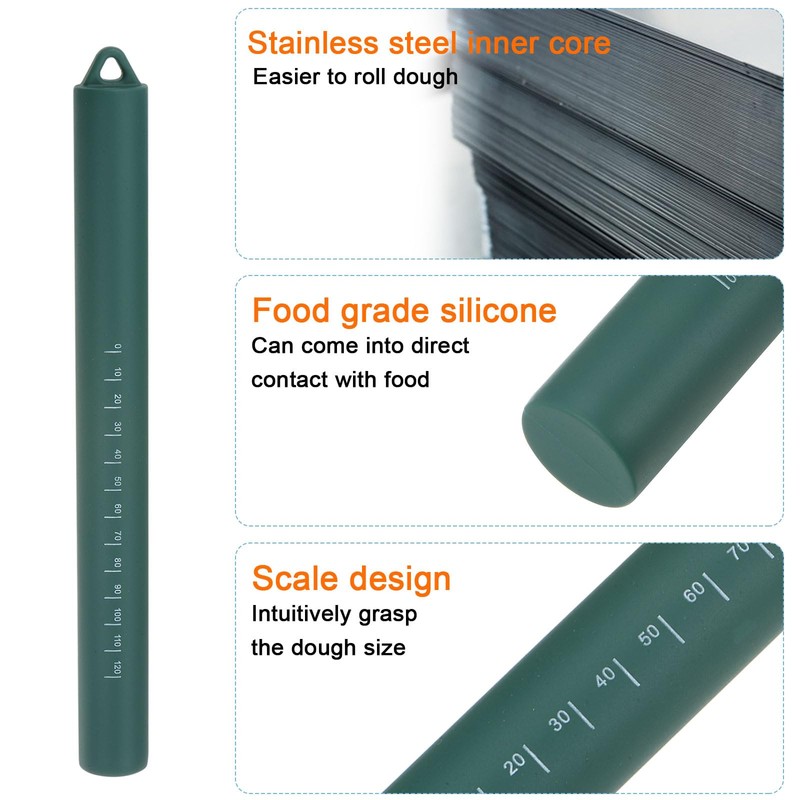 - Feature - The silicon steel rolling pin is comfortable to hold, has friction in contact, is non-slip, and does not stick to the dough, making it easier to roll out the dough. It is also equipped with a scale for easy control of dough size.