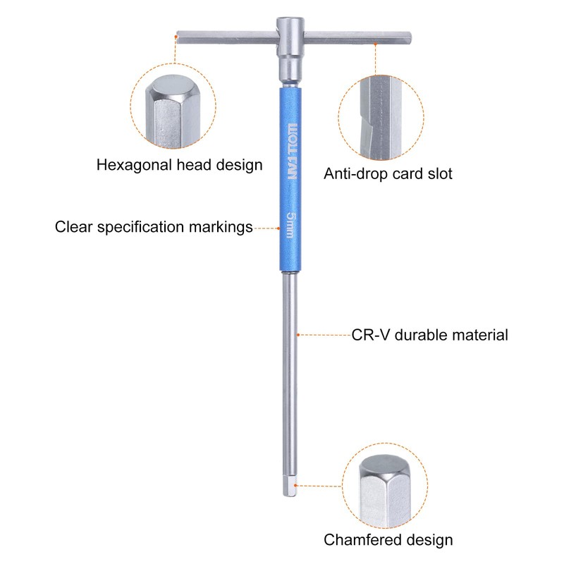 - Material - T-handle wrench is quenched and heat-treated chrome vanadium alloy steel (48-52 HRC), surface chrome plating, high strength and hardness, rust-proof and wear-resistant.