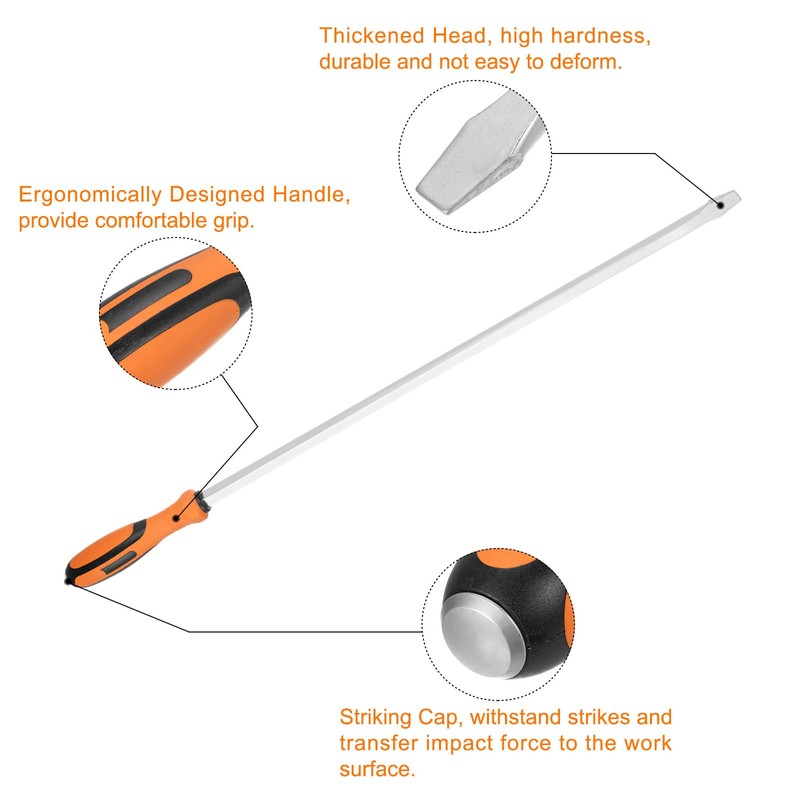 • Size - Head Type: SL13, Head Width: 19.5mm / 0.77", Rod Size: 795 x 12mm / 31" x 0.47"(L*D), Handle Size: 175 x 42mm / 6.9" x 1.7"(L*W), Total Length: 970mm / 38". This screwdriver is extra long and can be used as a pry bar and for tightening screws that are located far away.