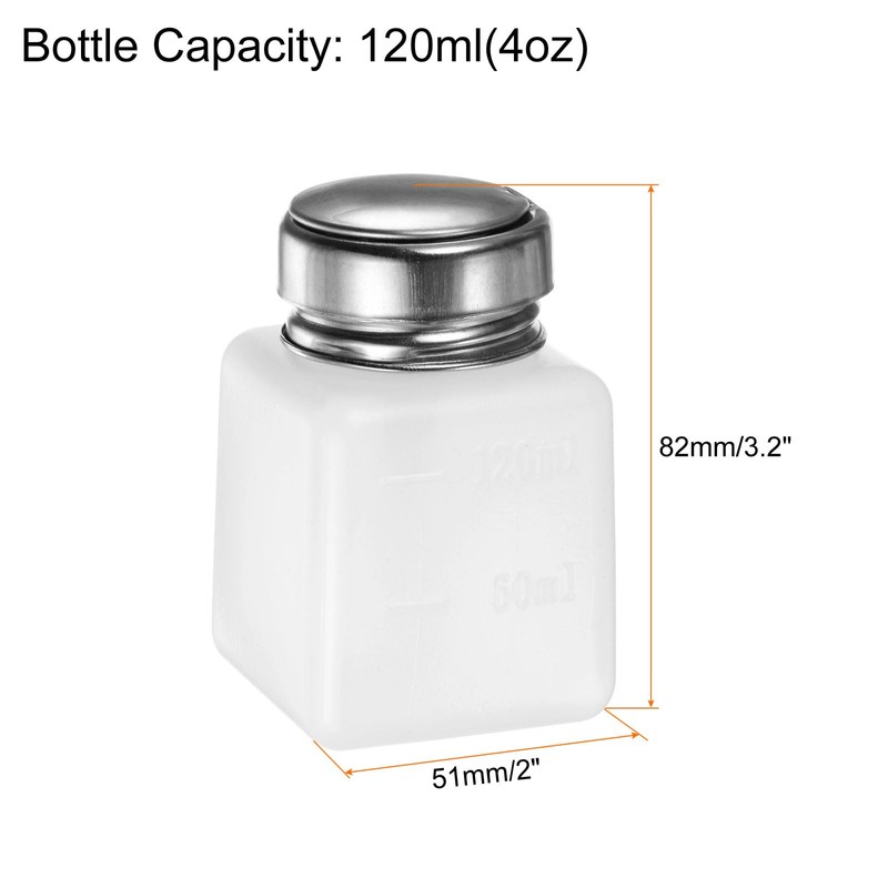 - Size - 120ml/4oz alcohol dispenser(82x51mm/3.2"x2"(L*W)) is small, easy to use and carry, and the bottle has clear graduations for you to control the amount of liquid solvent.
