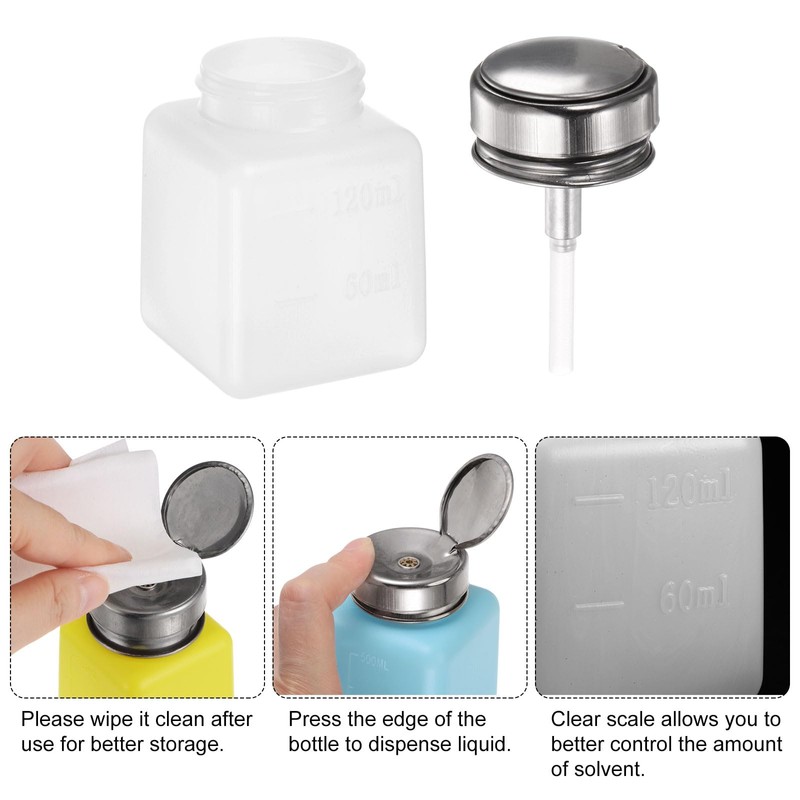 HARFINGTON Solvent Alcohol Dispensers 120ml(4oz) Push Down Liquid Dispenser Pump Bottle with Sealing Stainless Steel Lid for Acetone Cleanser Polish Remover, White