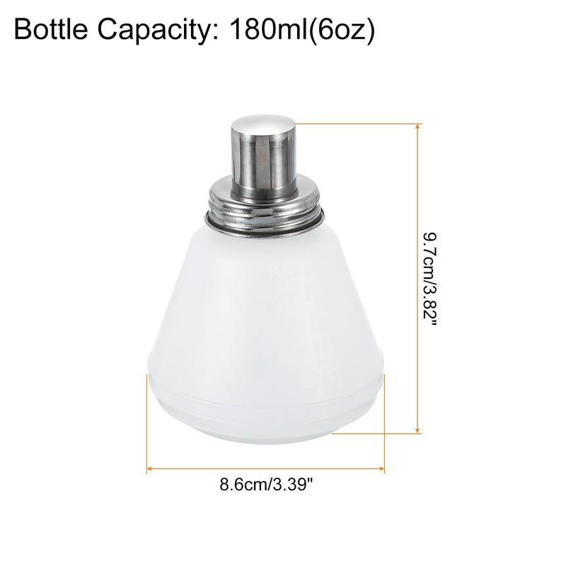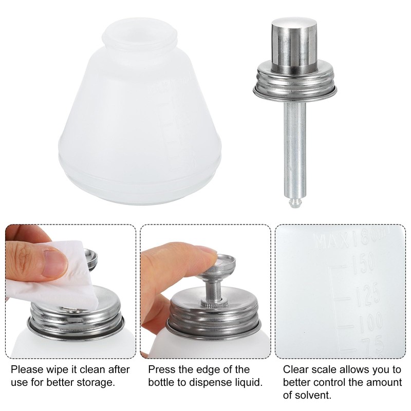 - Size - 180ml/6.1oz alcohol dispenser(97x86mm/3.82"x3.39"(L*W)) is small, easy to use and carry, and the bottle has clear graduations for you to control the amount of liquid solvent.