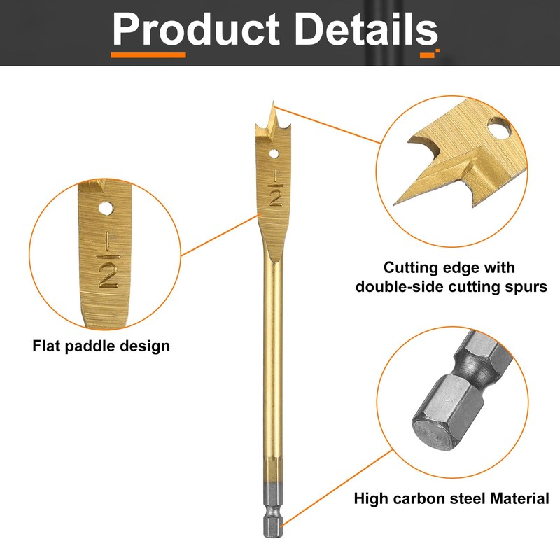 • Material - Wood spade drill bits are crafted from high carbon steel, ensuring high wear resistance and durability. The head surface is polished to enhance longevity and performance.