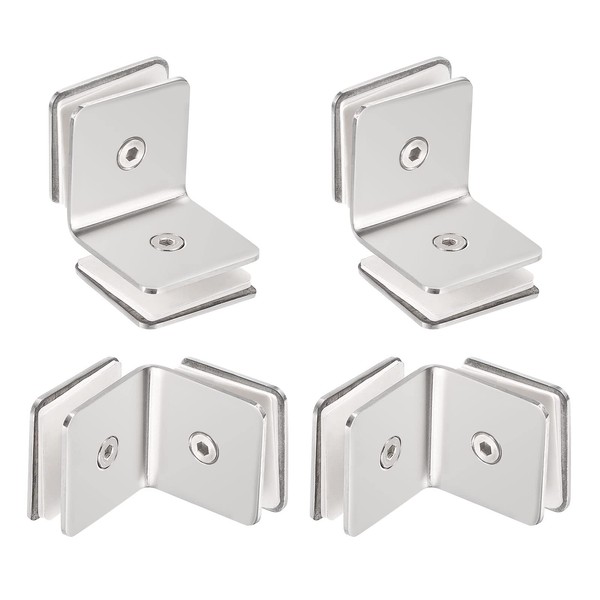 HARFINGTON Stainless Steel 90 Degree Glass Clamp, 4pcs for 8-12mm Thickness Double Side Square Frameless Glass Corner Clamp Bracket Clip for Shower Door, Bright Silver