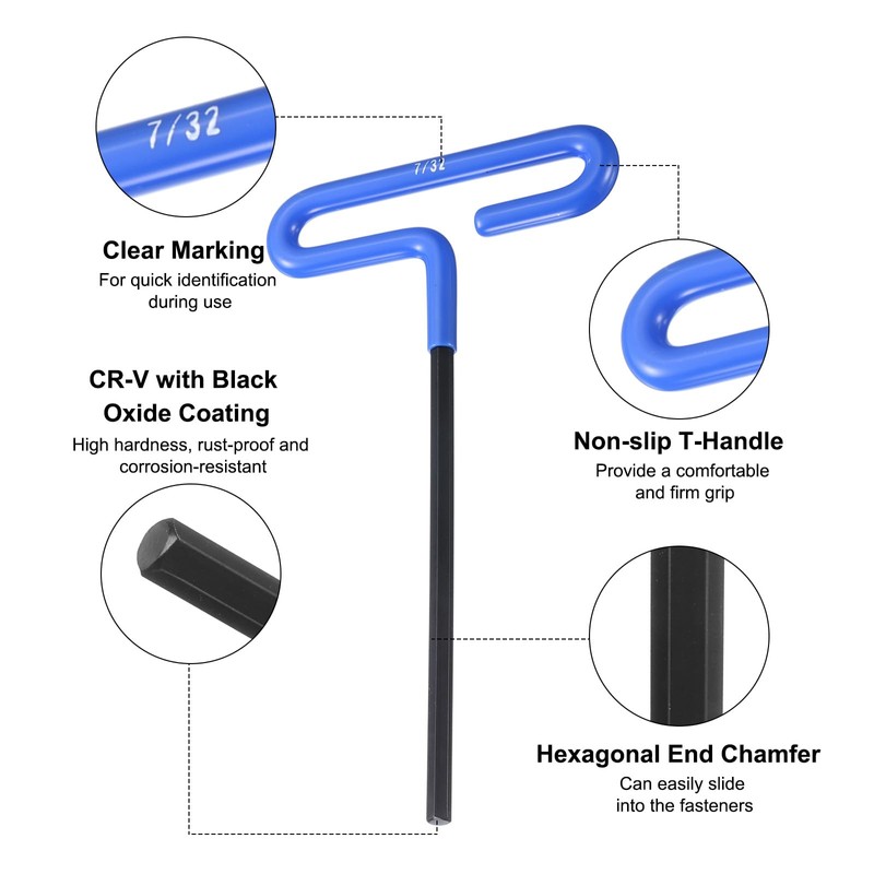 The ergonomically designed T-shaped handle is covered with a layer of plastic, which can effectively prevent slipping and provide a firm grip to achieve high torque, making it easy to loosen and tighten fasteners.