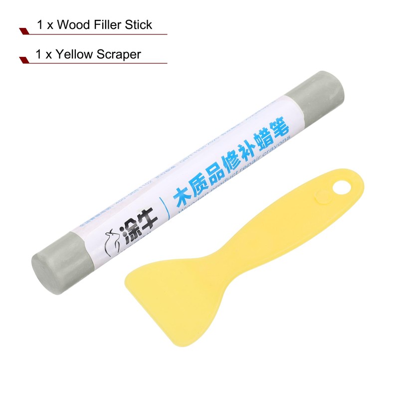 - Size - Length: 110mm / 4.33", Width: 12mm / 0.48"; Color: Space-Gray; Package includes: 1 x Wood Filler Stick + 1 x Yellow Scraper. Color reference color card.