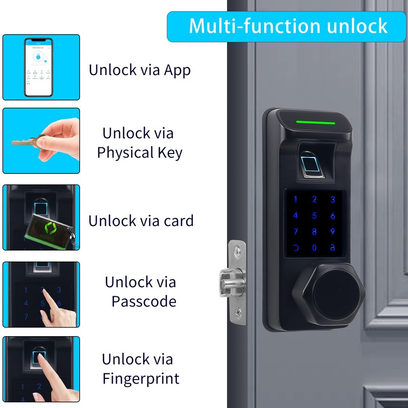 • [All-in-1 Fingerprint Door Lock] APP control + Fingerprint + Passcode +IC Cards (Include 3) + Backup Keys. Work with Alexa and Google Assistant & Support Voice Control (Need to pair with gateway, sold separately)