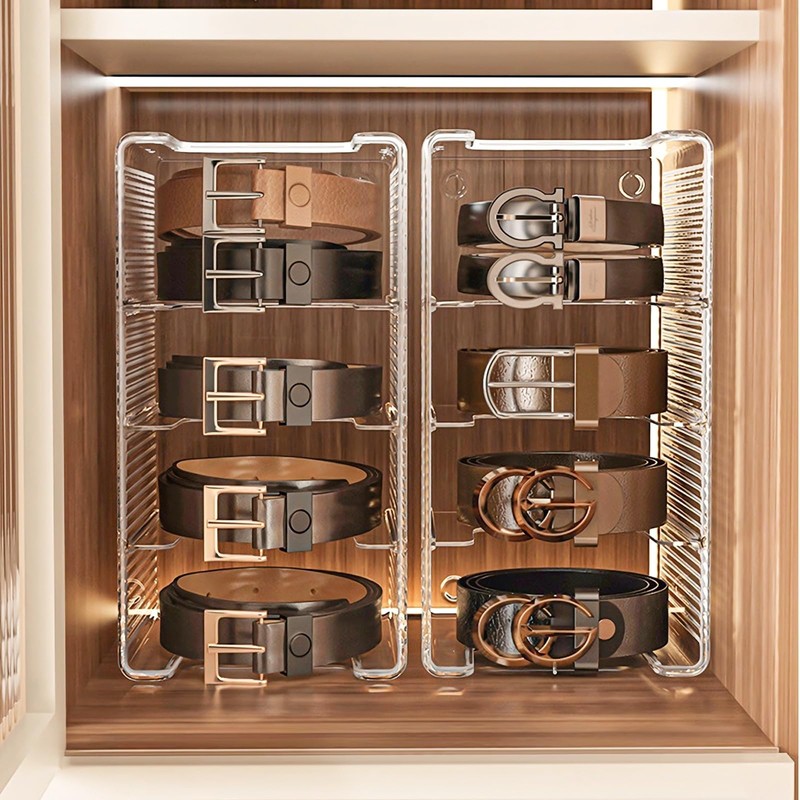 Ideal For: Organizers who value clutter-free closets. Showcasing designer or frequently worn belts. Maximizing space while keeping buckles scratch-free. Upgrade your closet with a storage solution that’s as functional as it is stylish – perfect for everyday ease and showcasing your collection! Keep your belt collection tidy, accessible, and beautifully displayed with this sturdy, transparent belt organizer designed for closets. Perfect for belts with large buckles, this storage solution combines practicality with sleek aesthetics.