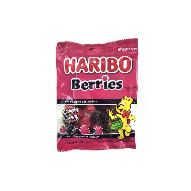 Haribo Berries Crunch and Chewy Gummy Candy (2 Pack) with 2 Gosutoys Stickers