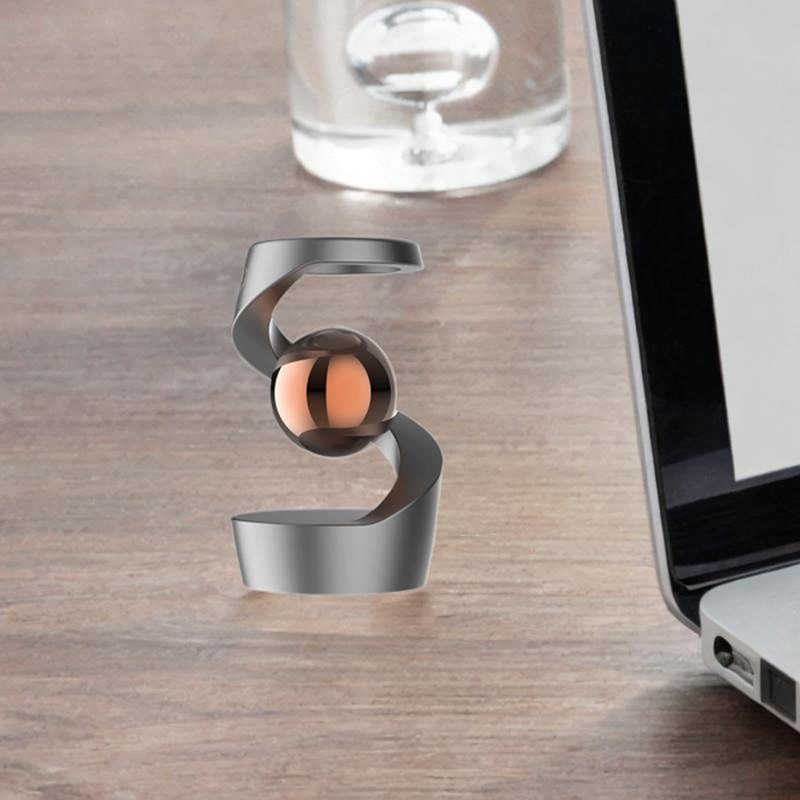 Harilla Defying Desk Toy Relaxing Toy Tabletop Ornament Aluminum Alloy Desktop Suspended Floating Ball, Gray Rose Gold Ball