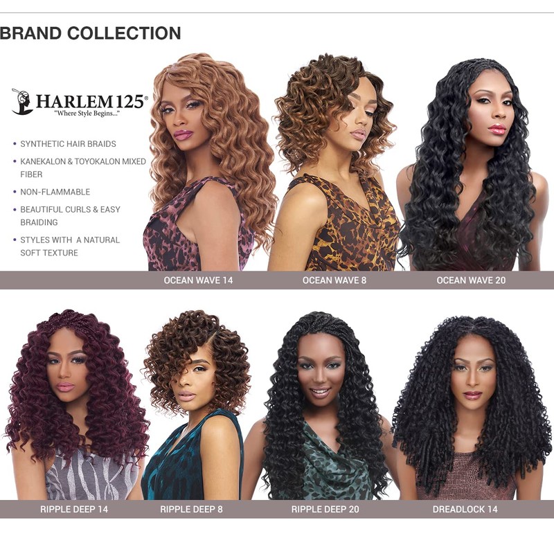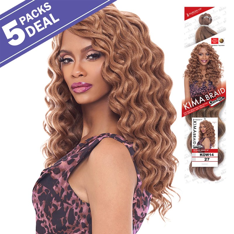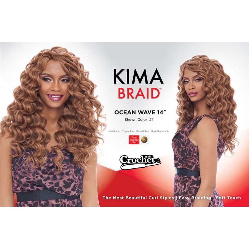 Harlem125 Synthetic Hair Braids Kima Braid Ocean Wave 14'' Color Shown: ''Colors of image and actual product may slightly vary based on screen resolution.'' Kanekalon- Mixed Fiber- Non-Flammable​ Washing Instruction Fill a basin with cool or luck warm water. Add a dash of mild shampoo and swish gently. Shake out, do not brush when wet and drip dry. Rinse thoroughly in cold water. Do not use curling iron or curling kits. No setting is necessary, curls will snap back into position when hair I completely dry.