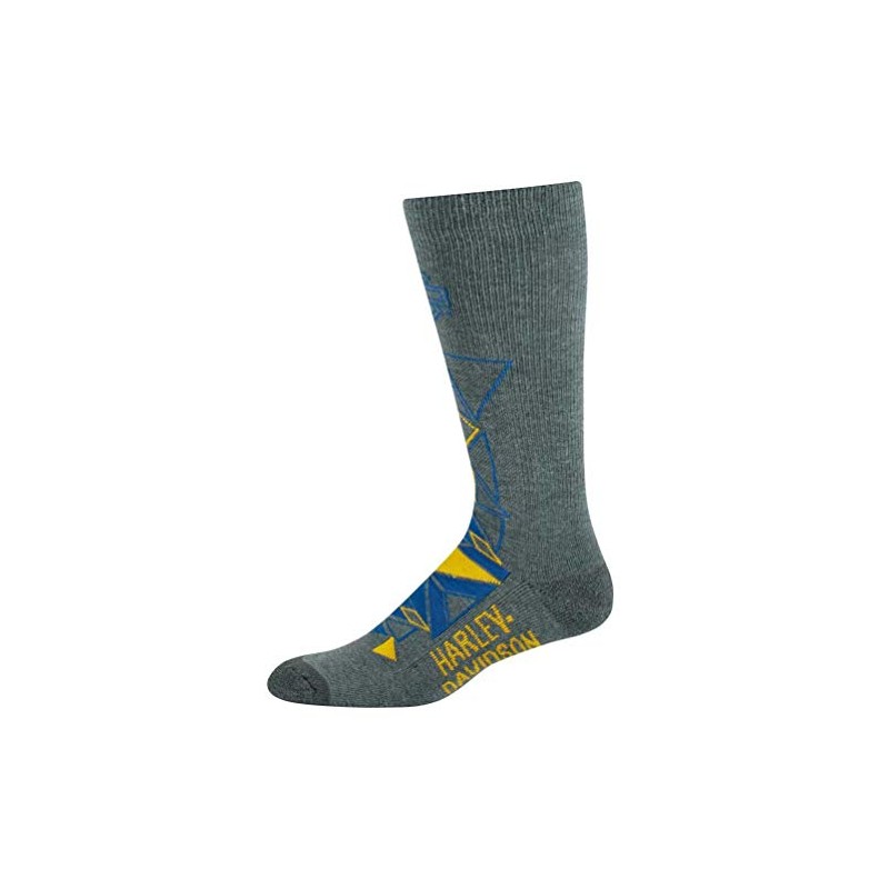 Harley-Davidson Mens Geo Pattern Breathable Riding Socks, gray, L