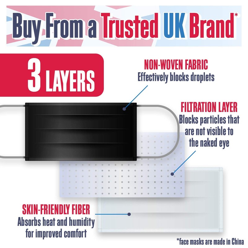 - Sealed pack - The 100 piece pack of black disposable masks come sealed in a polybag to ensure they are kept hygienically and to reduce the possibility of contamination, till they reach the intended user. Damp masks are more likely to contaminate everything around them