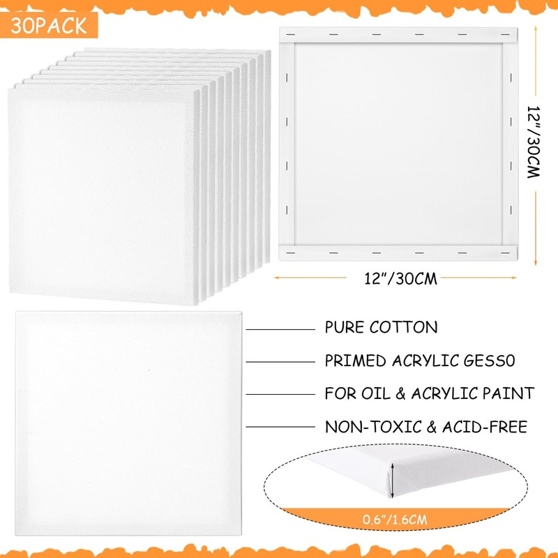 Harloon 30 Pcs Canvases for Painting 12 x 12 Inch White Blank Stretched Canvas Boards for Kids Panels Acrylic Oil Painting Watercolor Paint Art Supplies
