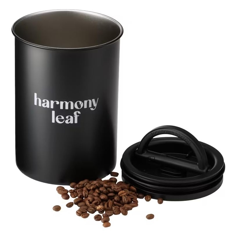 Harmony Leaf Stainless Steel Coffee and Food Storage Canister With Airtight Inner Lid, 16 Ounces