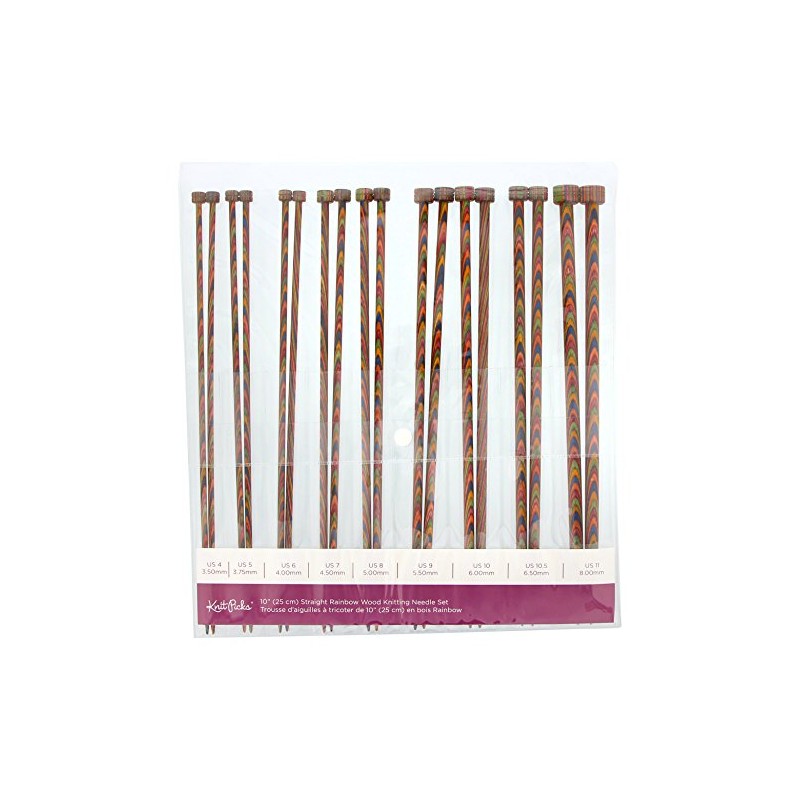 - 25cm (10") set includes one pair of needles in each of the following sizes; 3.5mm/US 4, 3.75mm/US 5, 4.0mm/US 6, 4.5mm/US 7, 5.0mm/US 8, 5.5mm/US 9, 6.0mm/US 10, 6.5mm/US 10.5, 8.0mm/US 11