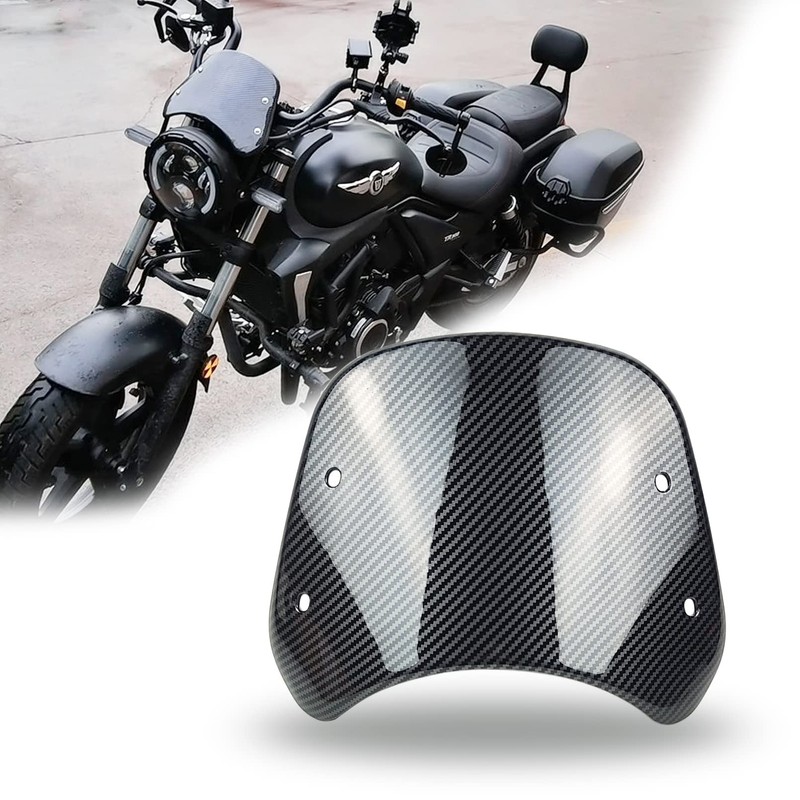 - Universal Motorcycle Windscreen designed with carbon fiber style appearance, making your vehicle more aggressive and charming.