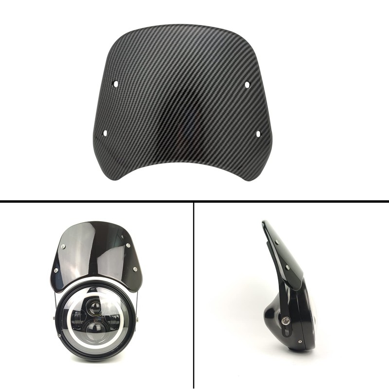 HARPUOU HARPUOU Universal Motorcycle Windshield Carbon Wind Deflector Windscreen Front Flyscreen with Mount for Motorbike 5"-7" LED Headlight