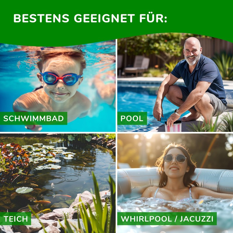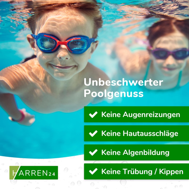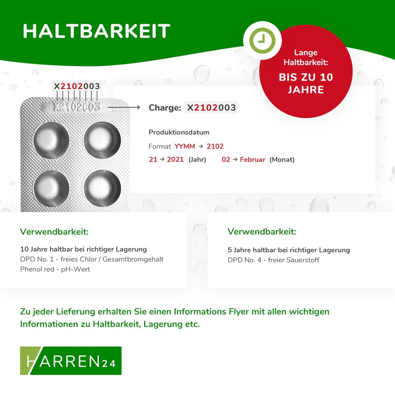 • Don't leave your water quality in the pool, pond, jacuzzi or whirlpool to chance. Test regularly with harren24 pool tablets from always fresh production "Made in Germany" with very long durability.