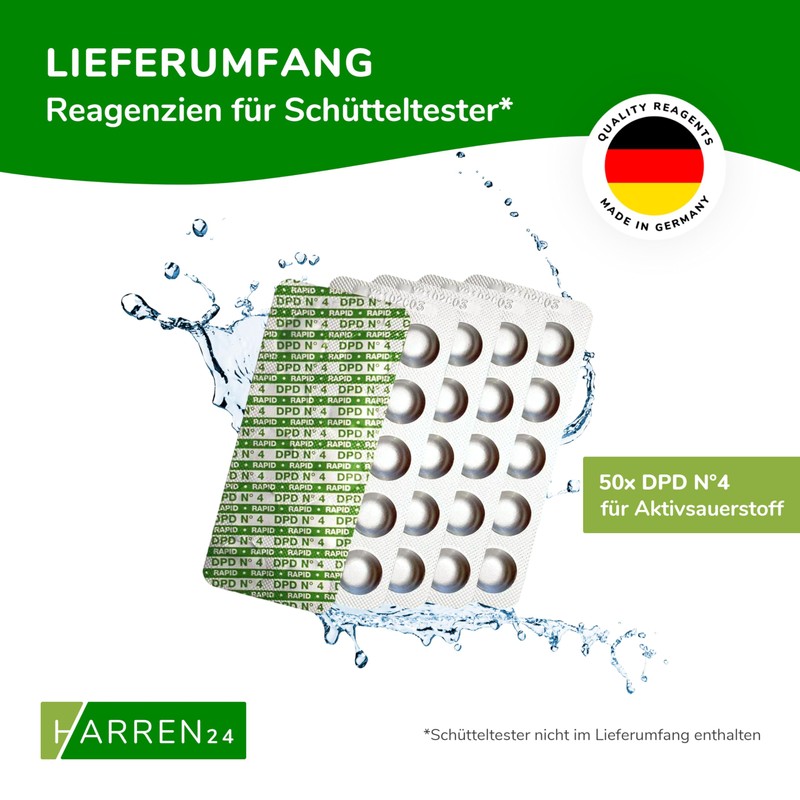 • Harren24 Test tablets for water analysis for shake tester (rapid). Due to the standardised composition suitable for water testers of all manufacturers.