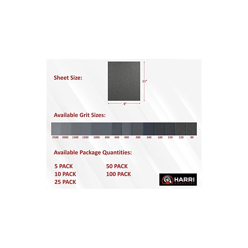 HARRI ABRASIVES Silicon Carbide Sandpaper Sheets - Wet/Dry Electrocoated - 9" x 11" - Grit: 150 (Pack of 50)