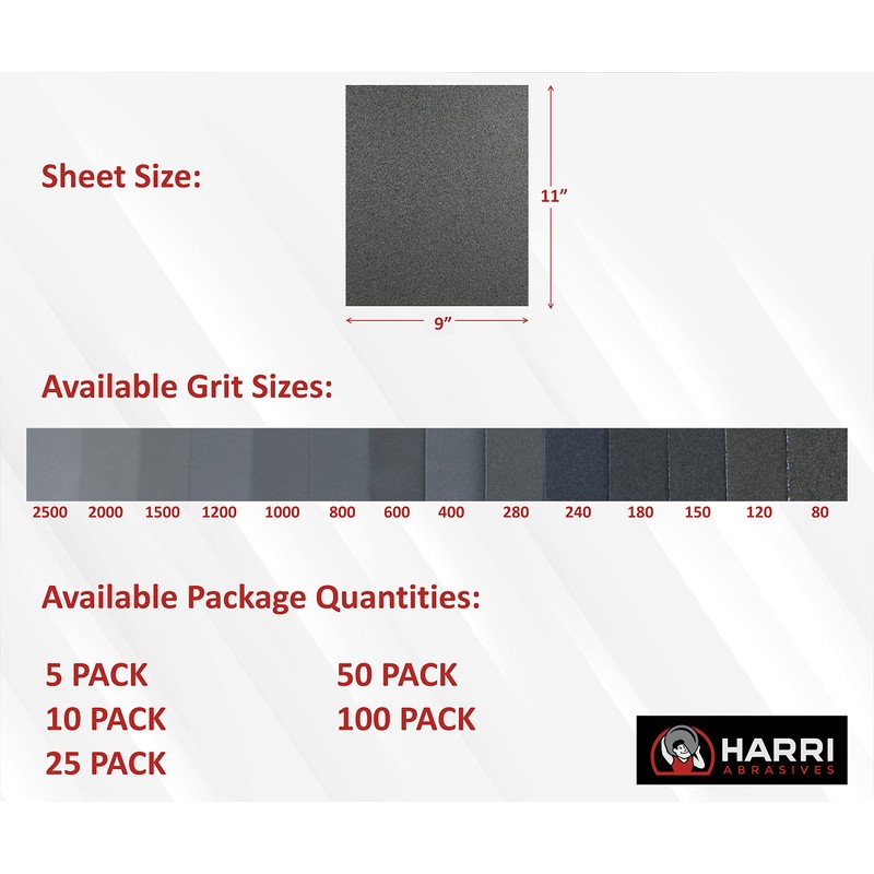 - Available in Multiple Grit sizes: 80, 120, 150, 180, 240, 400, 600, 800, 1000, 1200, 1500, 2000, 2500